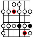 Moving up the neck to the 5th fret, is the next scale form. These are all the same notes as the previous form, just in a different place on the neck. As you can see there are actually 2 different fingerings in this position. You are either going to shift down 1 fret for the 4th and 3rd strings, or stretch with your 4th finger and grab those same notes on the 5th and 4th strings. This scale form is sometimes referred to as the Dorian scale form. If you thought of the first note that you played (A) as the root, this would be the mode A Dorian. Modes are a whole other topic, so don't worry if you don't really understand what that means at the moment. It is just another name for you to refer to this particular scale fingering as. |